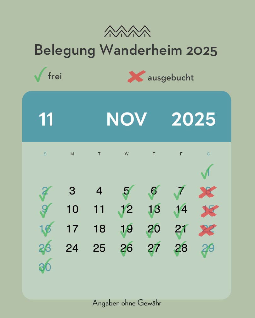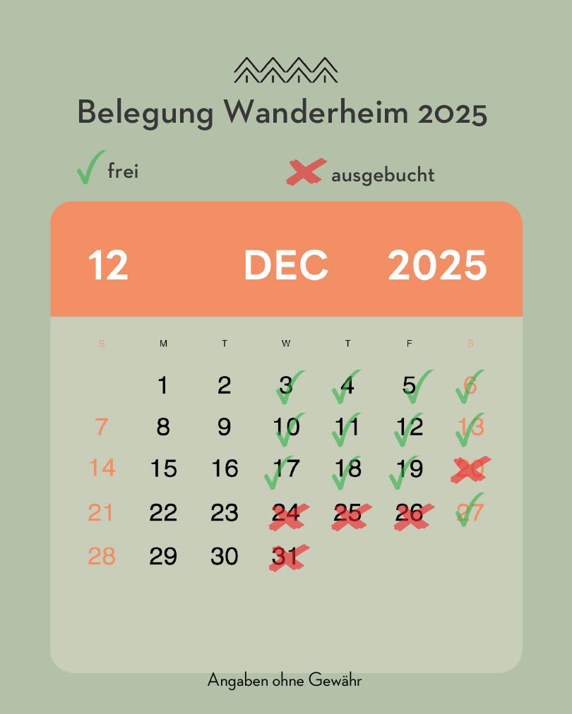 Anfragen zur Übernachtung an Wochenenden können erst zwei Monate vor Wunschtermin gestellt werden