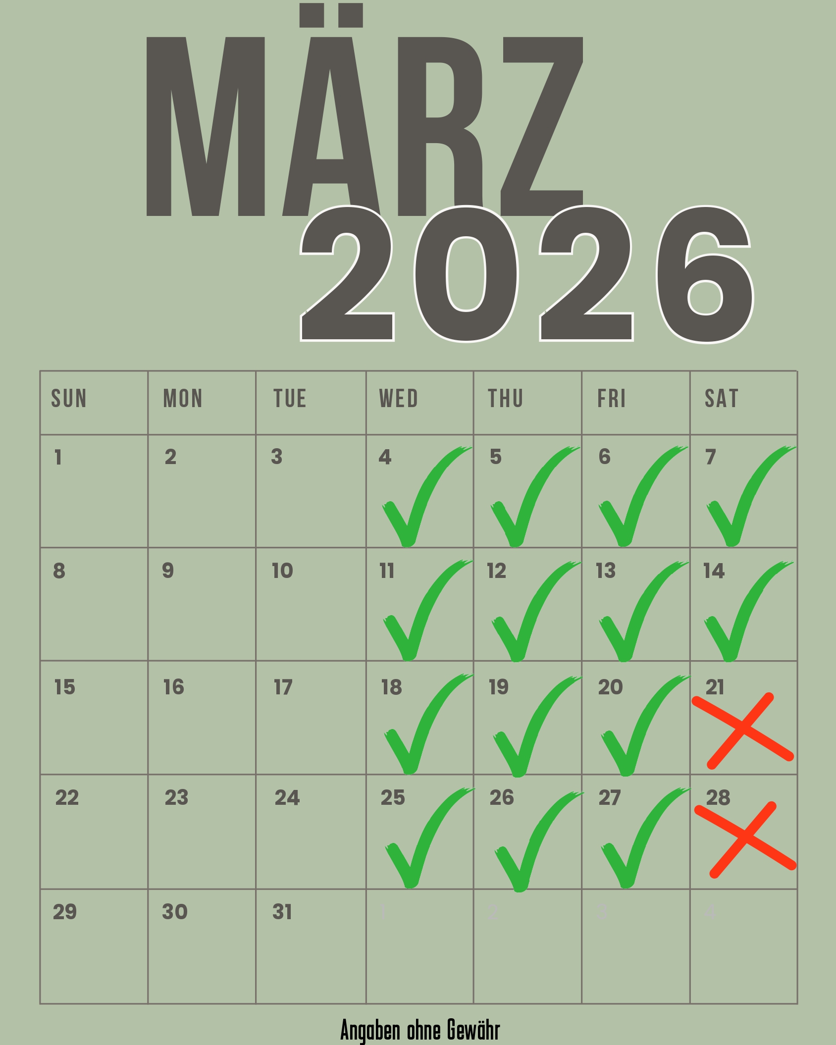 (ausgenommen Feierlichkeiten, Firmenevents und Gruppen ab 35 Personen).